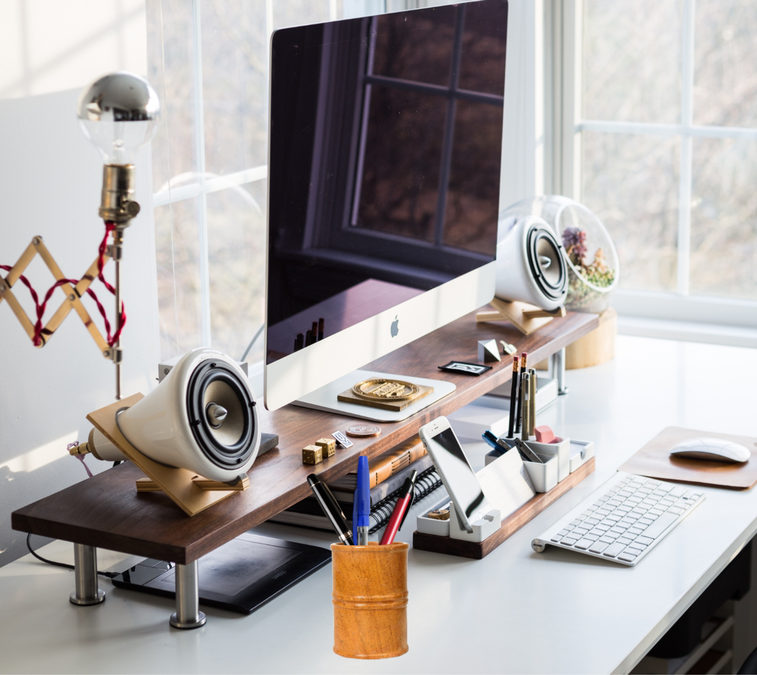 - Pen Holder for neatly containing pens, pencils, scissors, and more.